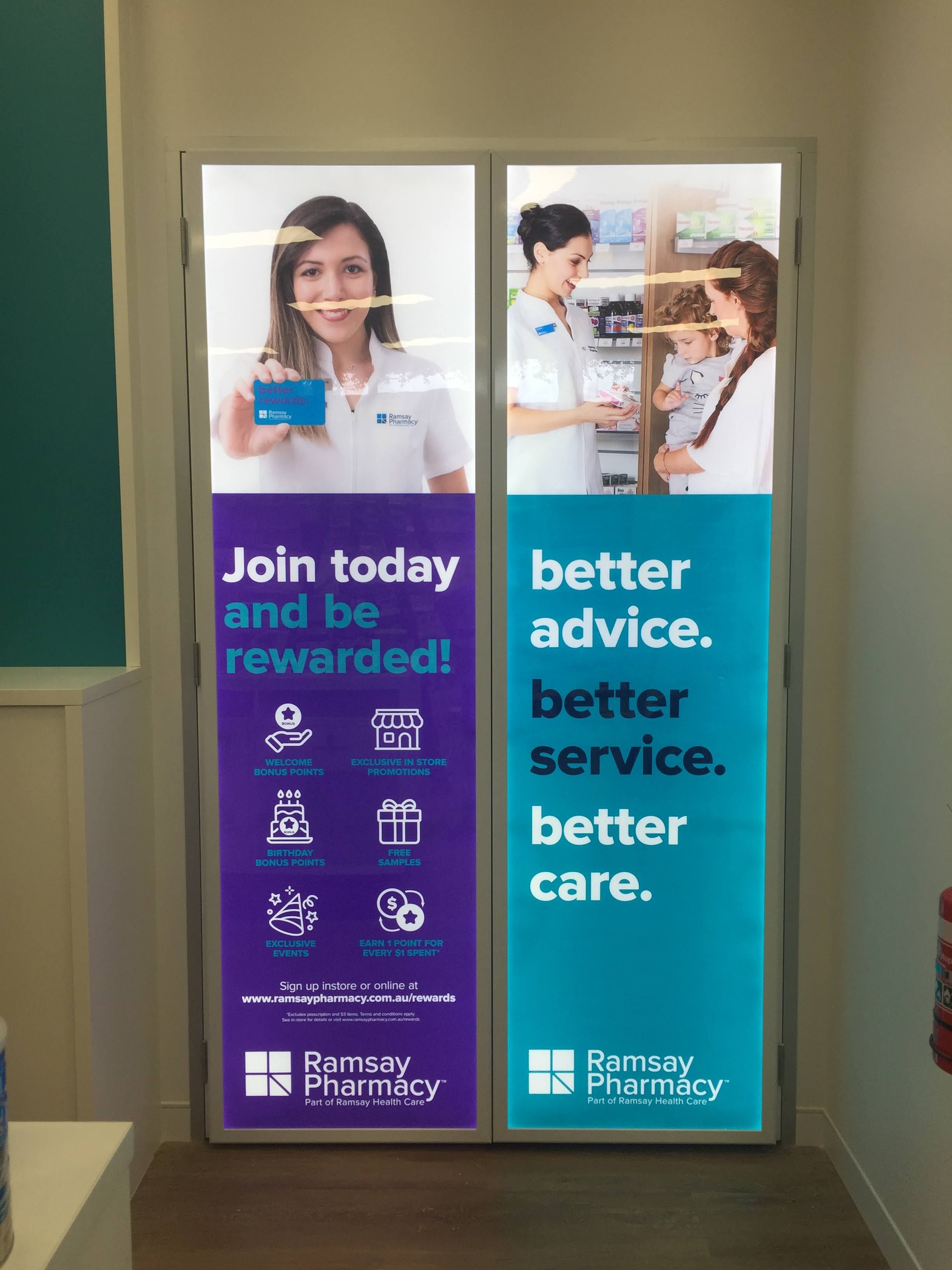 In areas where privacy is required or unwanted sunlight is being received, your window signage can be created using perforated vinyl to reduce the amount of sunlight ingress or increase privacy. The perforated vinyl acts as a one-way vision film, people inside may view out and people outside cannot see in.